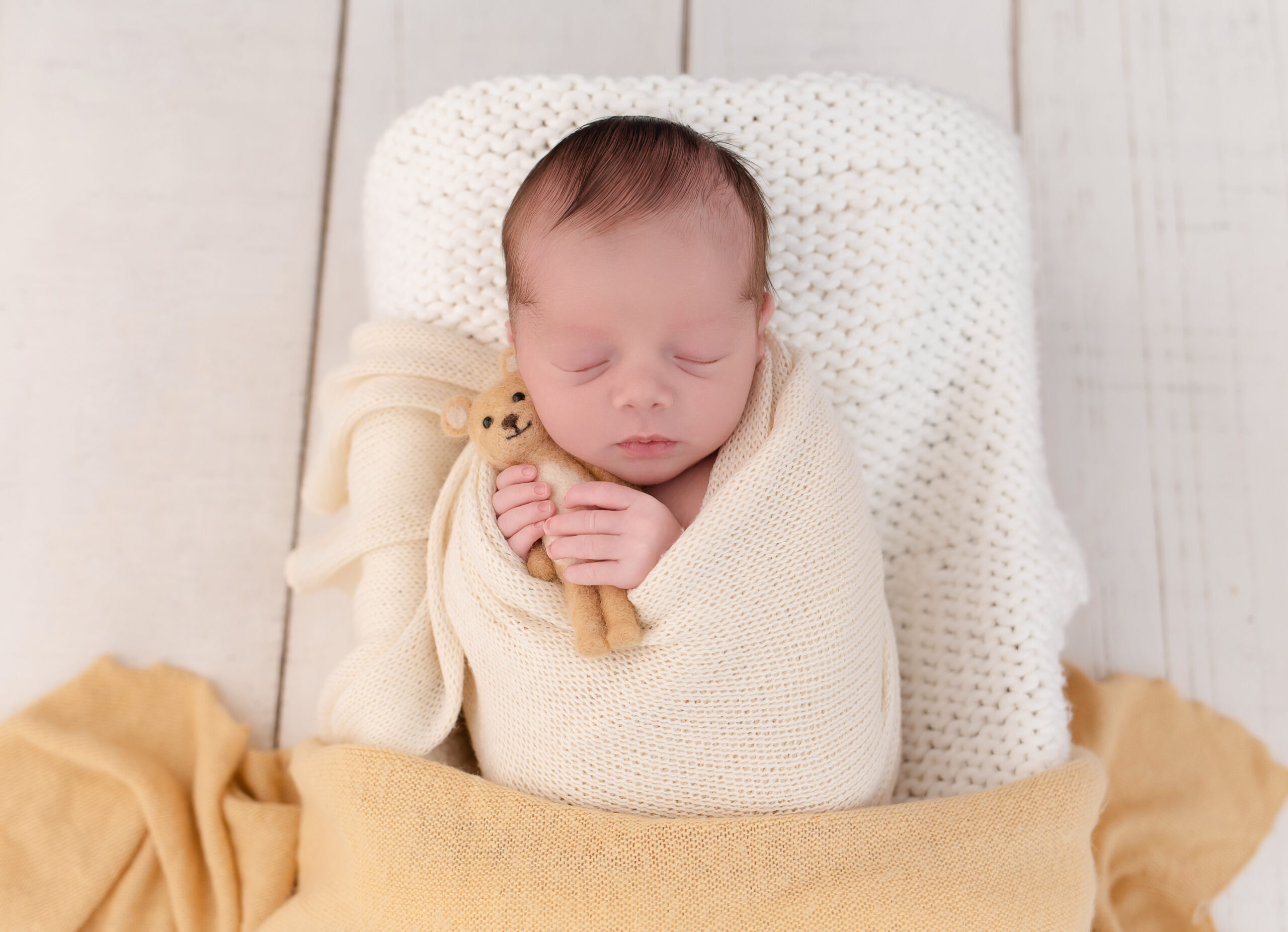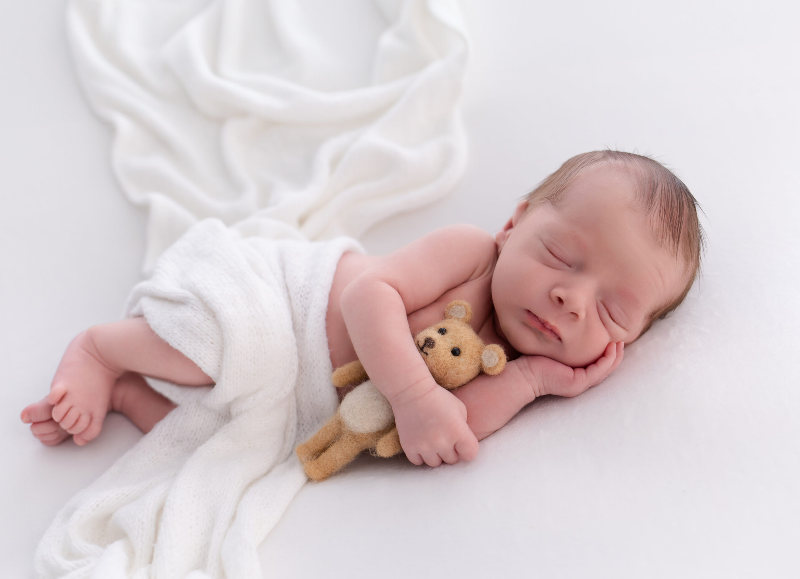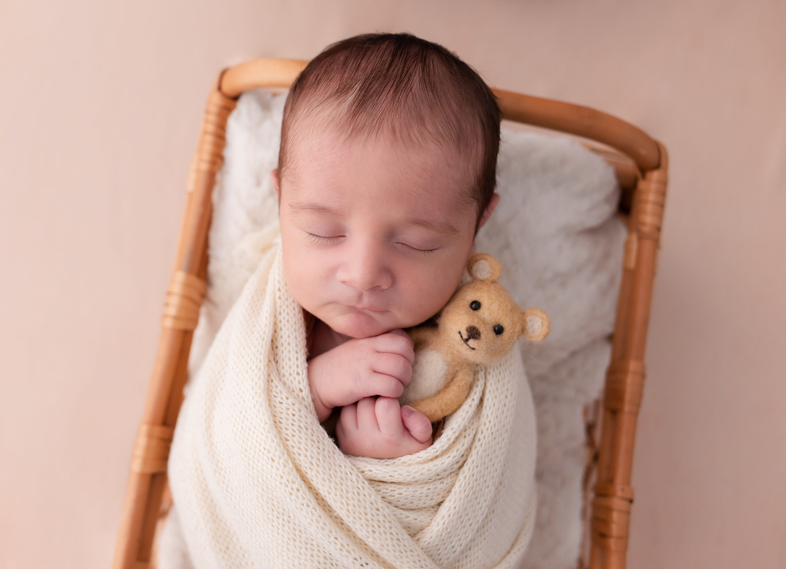 Aqui no estúdio a segurança é prioridade, por isso sempre realizamos o ensaio com a ajuda de uma assistente, assim o recém-nascido nunca fica sozinho. O ambiente fica climatizado a 27º graus durante todo o ensaio. Utilizamos máscara e todos os acessórios que entram em contato com o bebê são higienizados a cada uso.